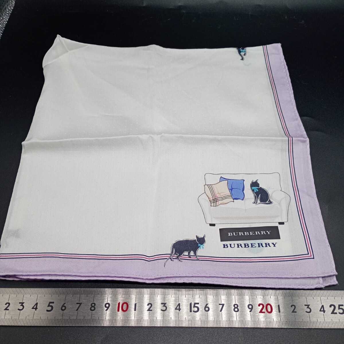 - BURBERRY バーバリー ハンカチ 猫 ねこ ネコ ソファー ふちパープル no.3011