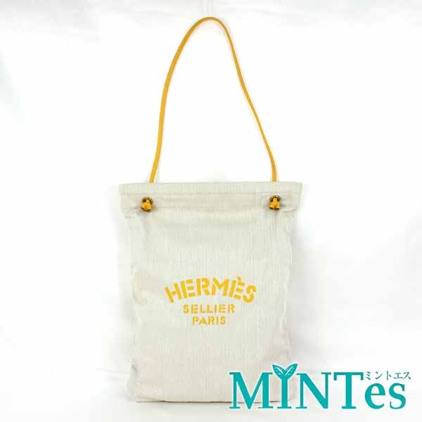 - Hermes エルメス アリーヌ GM ショルダーバッグ ナチュラル×イエロー キャンバス ユニセックス トートバッグ デイリー シンプル 男女兼用