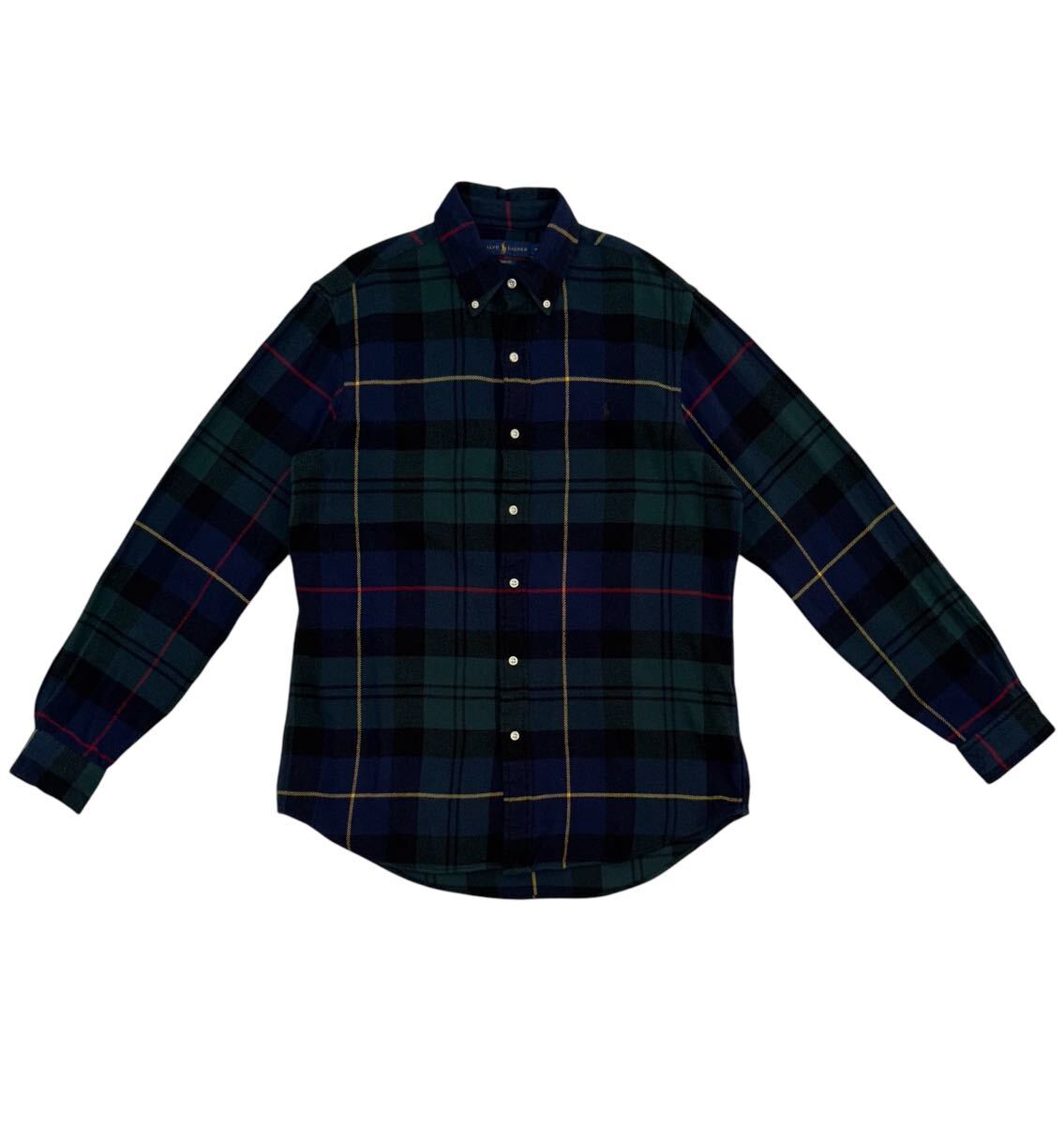 > 【美品】RALPH LAUREN ラルフローレン フランネルシャツ 長袖 インド製 ネイビー グリーン メンズM