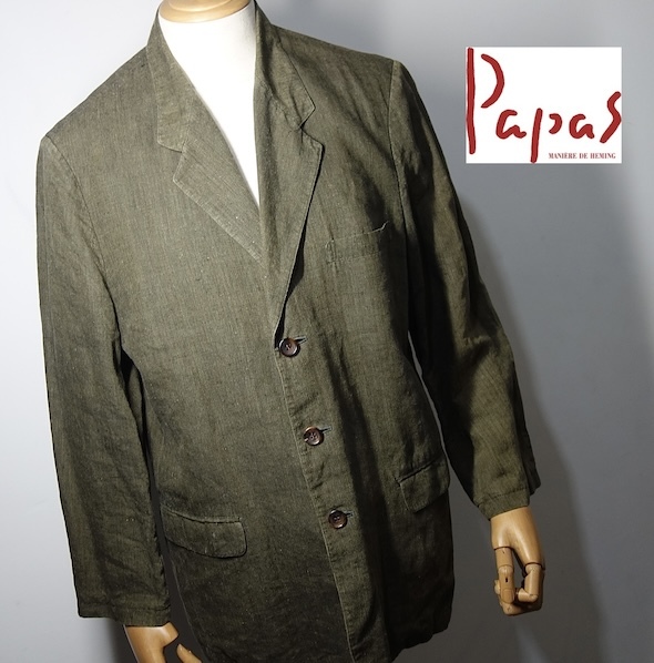 - TK 希少 Papas パパス MANIERE DE HEMING リネン テーラードジャケット 48 M オリーブ 麻100 背抜き