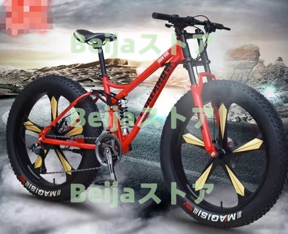 > 強くお勧め マウンテンバイク 26インチファットタイヤハードテイル 7速 デュアルサスペンションフレームとサスペンションフォーク F1547