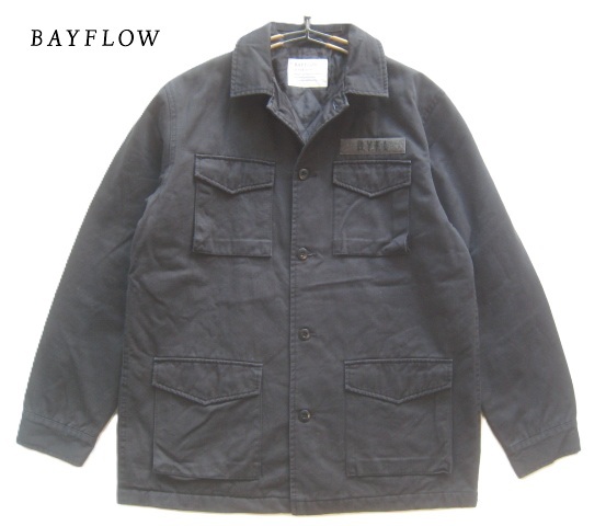 - 美品!!ベイフロー BAYFLOW*ロゴワッペン付き 中綿入りコットンミリタリージャケット 4 実寸L 黒 ブラック 海上がりに着たい