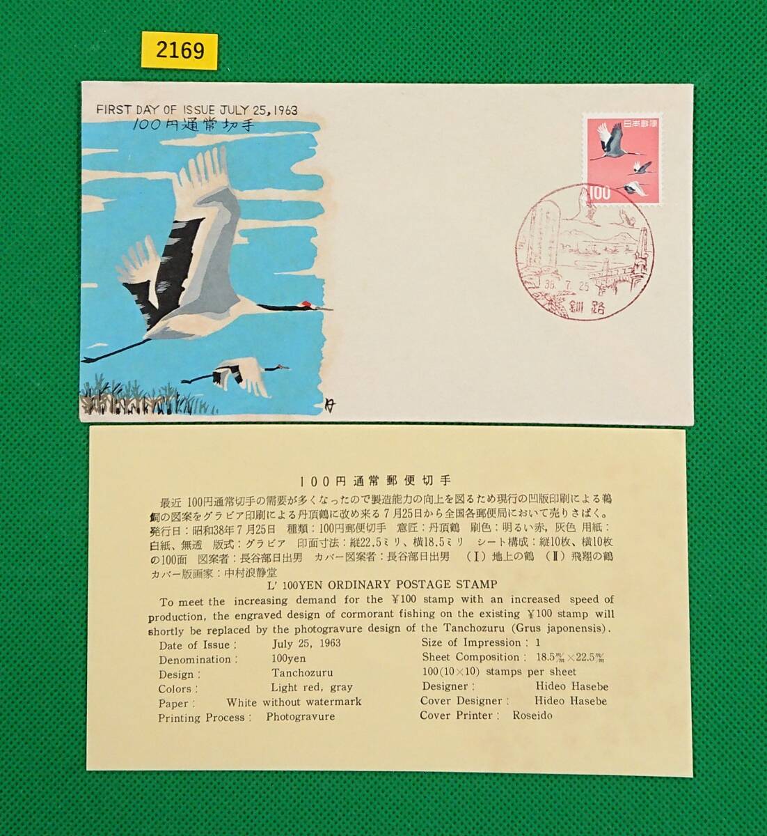 - FDC/普通切手/第2次円単位/丹頂/初日印/釧路風景印/松屋木版/カバー版画家:中村浪静堂/解説書有り/1963年7月25日/初日カバー №2169