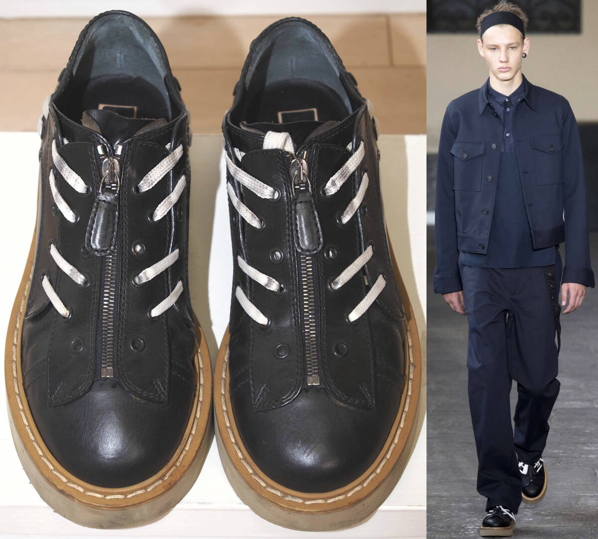 - N°21 ヌメロヴェントゥーノ 16SSフロントZIPハトメデザイン厚底シューズ42黒 Italy製