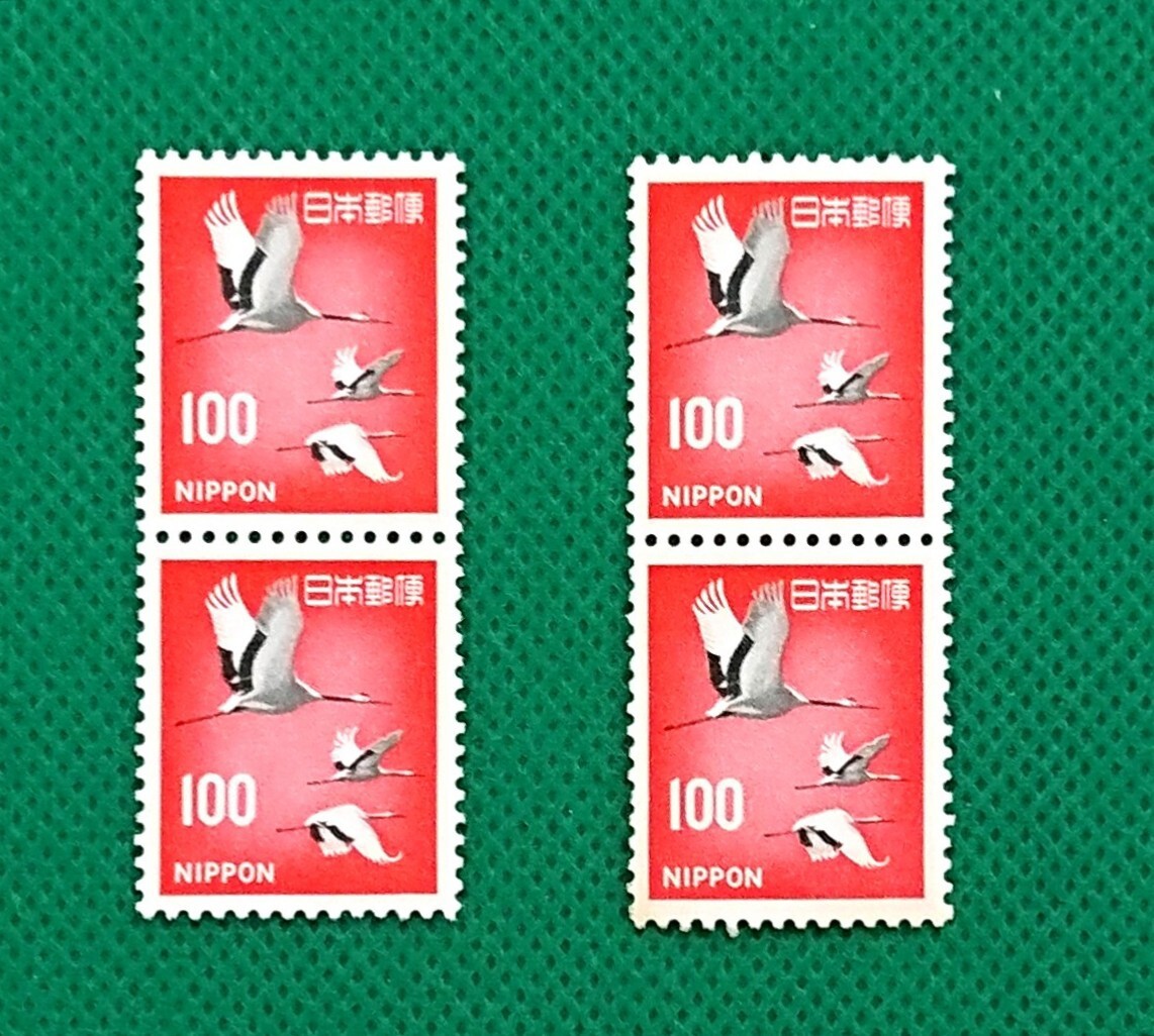 - 丹頂/第2次ローマ字入り/1968年/2枚ブロック×2/極上美品/糊艶良好/ヒンジ無/シワ無/シミ無/未使用/№79