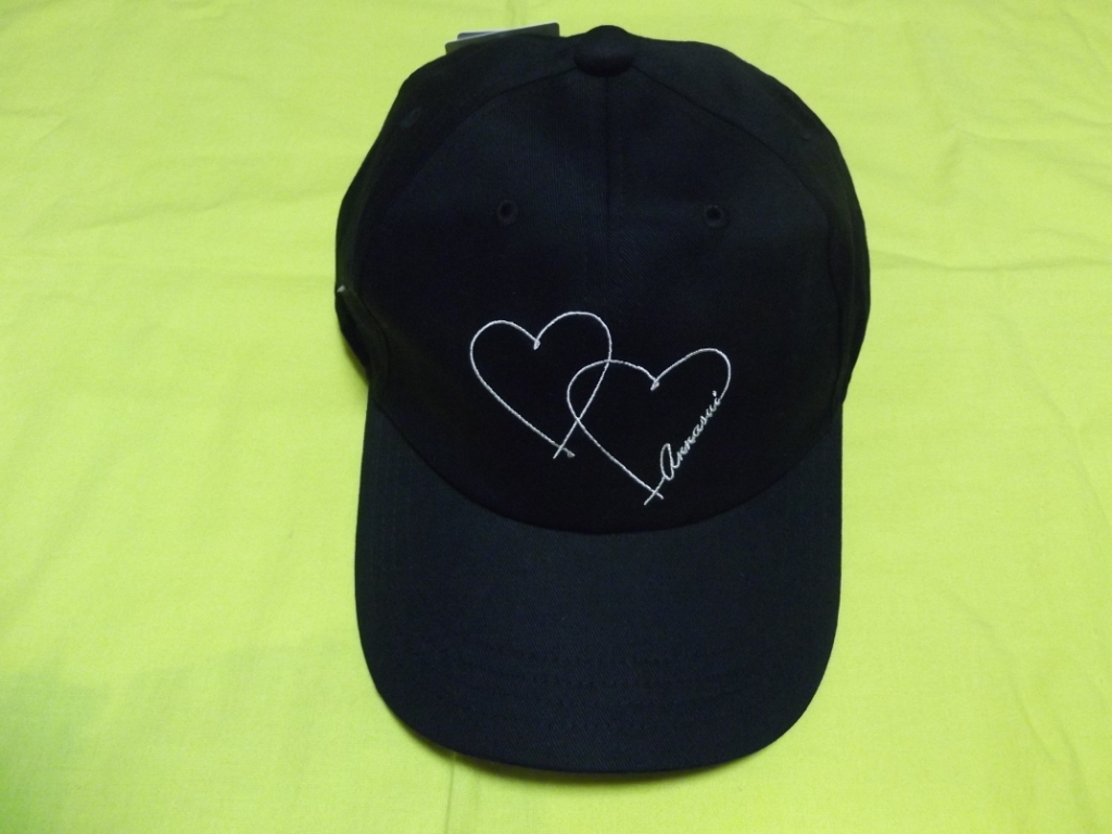 > ★アナスイ コットン キャップ ブラック M 57.5 サイズ調整可能 56~59 手洗い可能 ロゴ ハート 刺繍