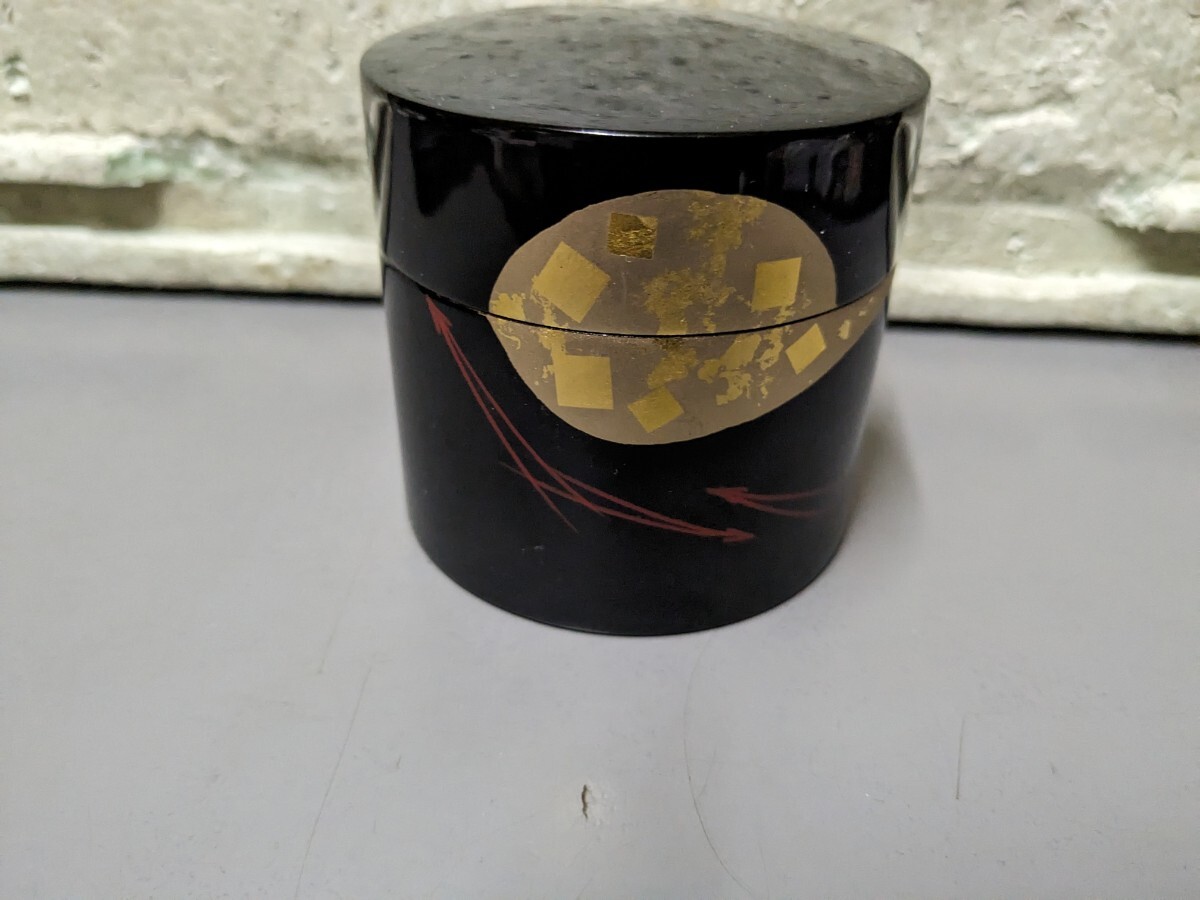 - 茶筒 茶器 煎茶道具 木製 古い 漆塗り 茶葉入れ 茶道具 茶入 高さ約7センチ 棗