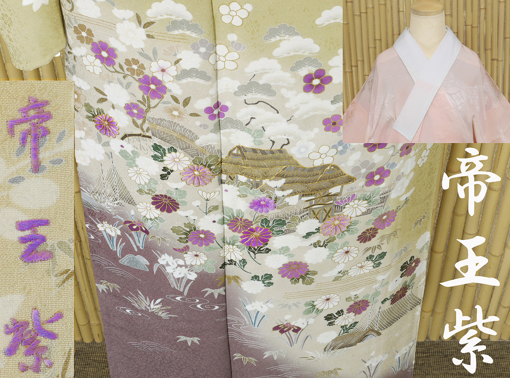 > 【京かんざし】696「じゅらく 帝王紫刺繍」特選訪問着 長襦袢付き身丈157 cm裄丈65 cm★即決送料無料!