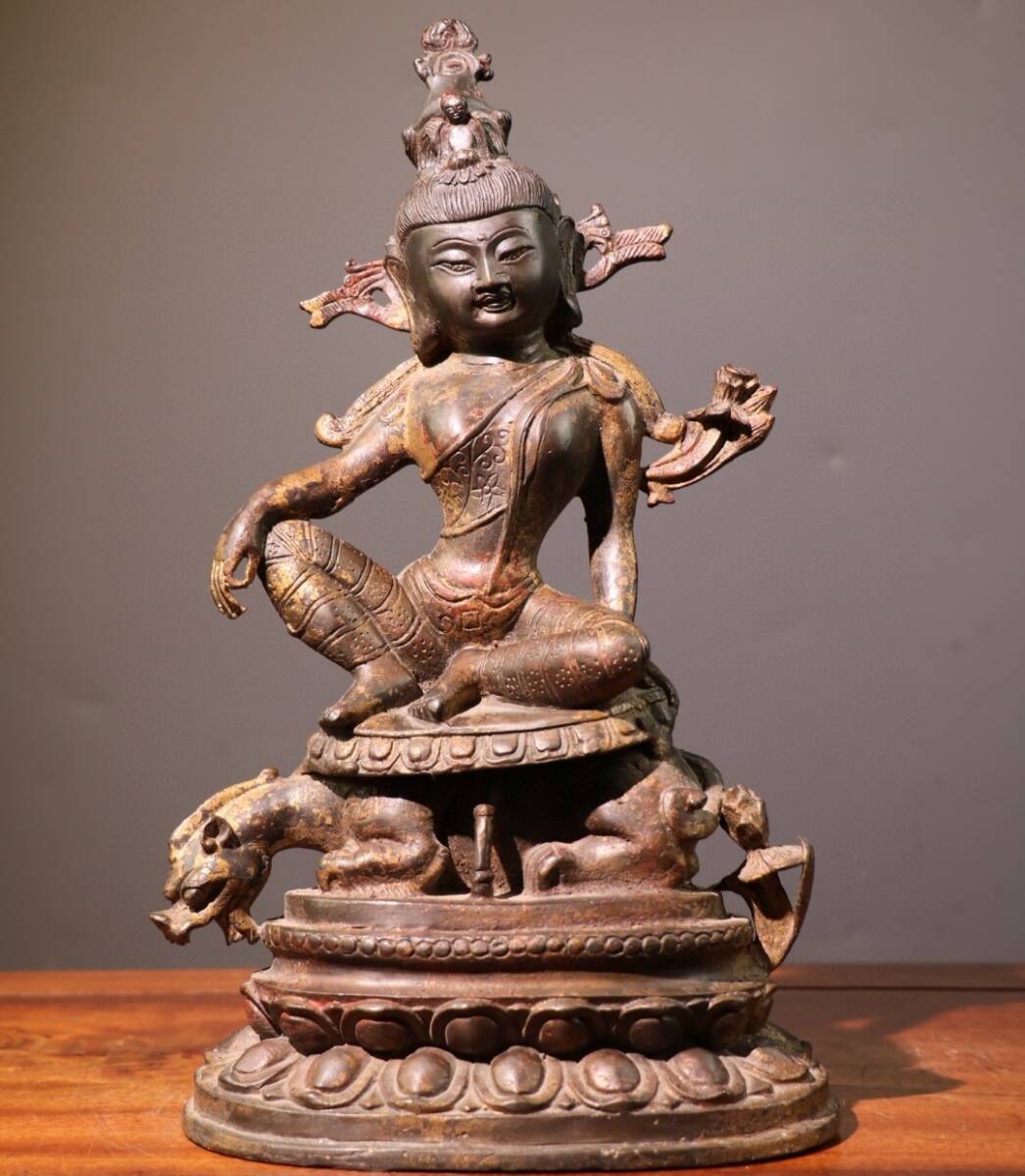 > 旧蔵 清 純銅泥金 朱砂老仏像 自在観音菩薩一尊 仏像 奉納されていた 供養品 銅製品 銅器 極細工 中国古玩 古美術 骨董品 201-13