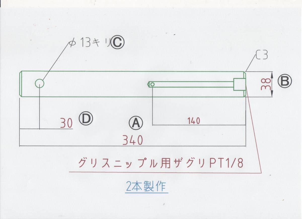 - NO591 Φ38用 全長340mm グリス穴付きバケットピン 2本