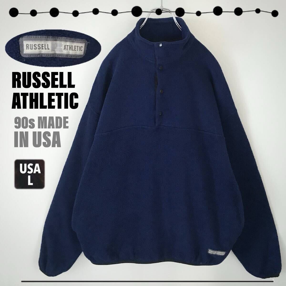 - RUSSELL ATHLETIC ラッセル★90s USA製★ハーフスナップ★フリースジャケット★USAメンズL 2311N021