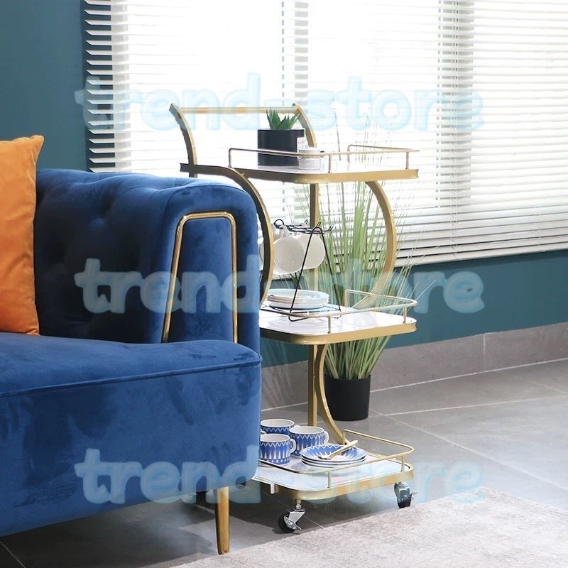 - ラグジュアリー ワゴン テーブル 3層カート 金 ゴールド キャスター付き サービスワゴン キッチンワゴン 高級感 サービング用 おしゃれ