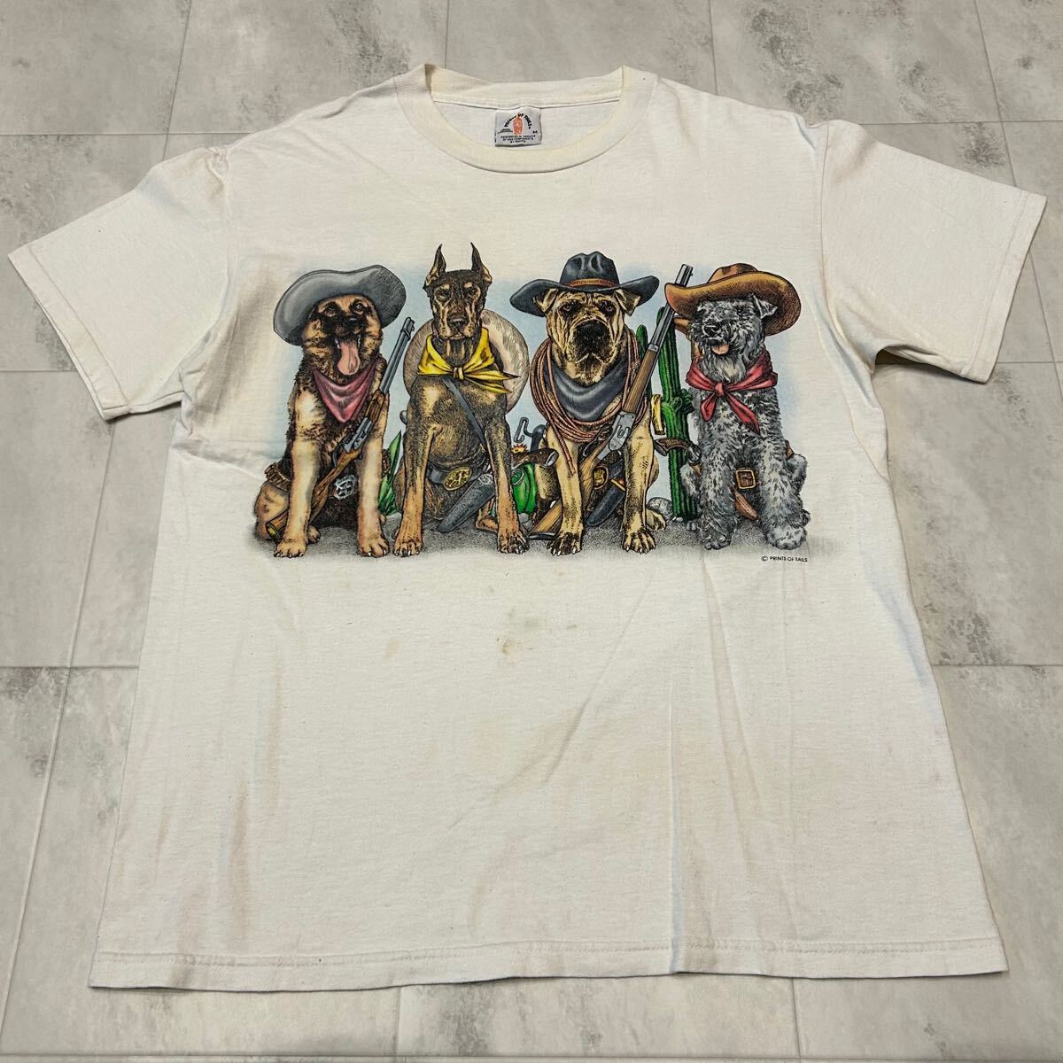 - 90s ONEITA PRINTS OF TAILS 犬 カウボーイ ガンマン バック プリント ビンテージ 半袖Tシャツ