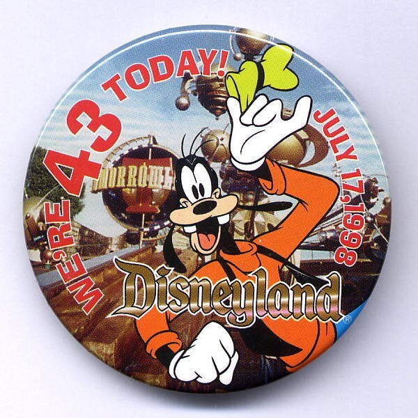 - ディズニー グーフィー 缶バッジ ディズニーランド43周年記念 1998年7月17日 USA