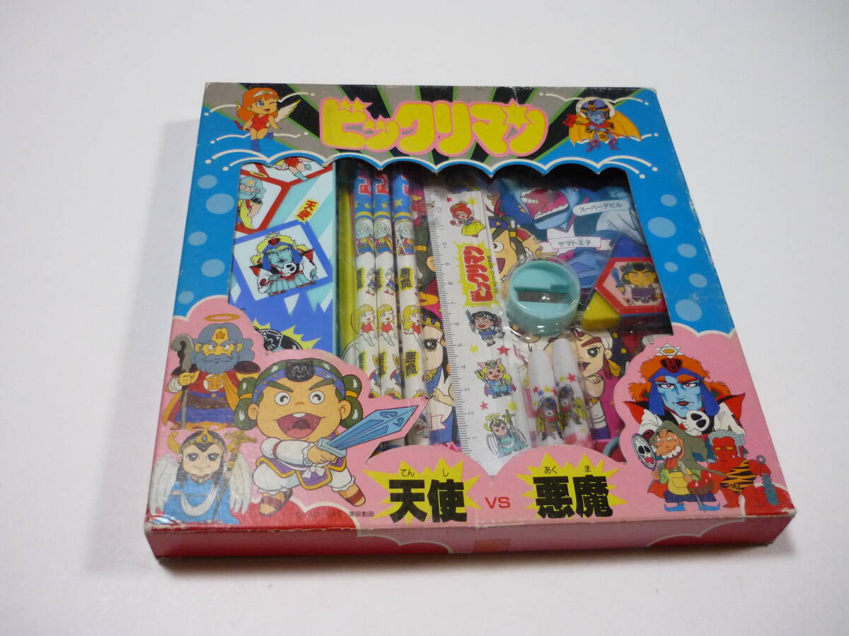 - [L管11]文房具 セイカノート ビックリマン 天使VS悪魔 文具セット 筆箱(ペンケース)スケッチブック 定規 消しゴム 当時物