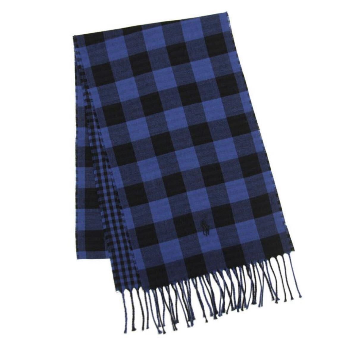- POLO RALPH LAUREN ポロ ラルフローレン コットンマフラー ブロックチェック ブルー REVERSIBLE CHECK SCARF PC0744 479