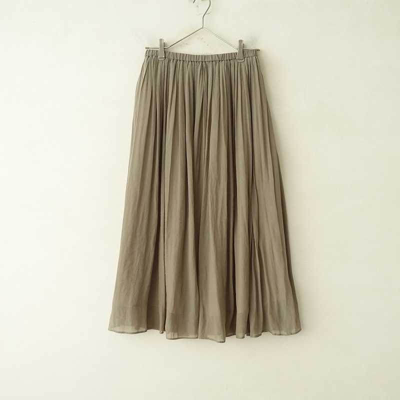 > ビアズリー BEARDSLEY *シアーギャザースカート*ボトムス薄手ウエストゴムカーキシースルー(sk1-2412-389)【71A52】