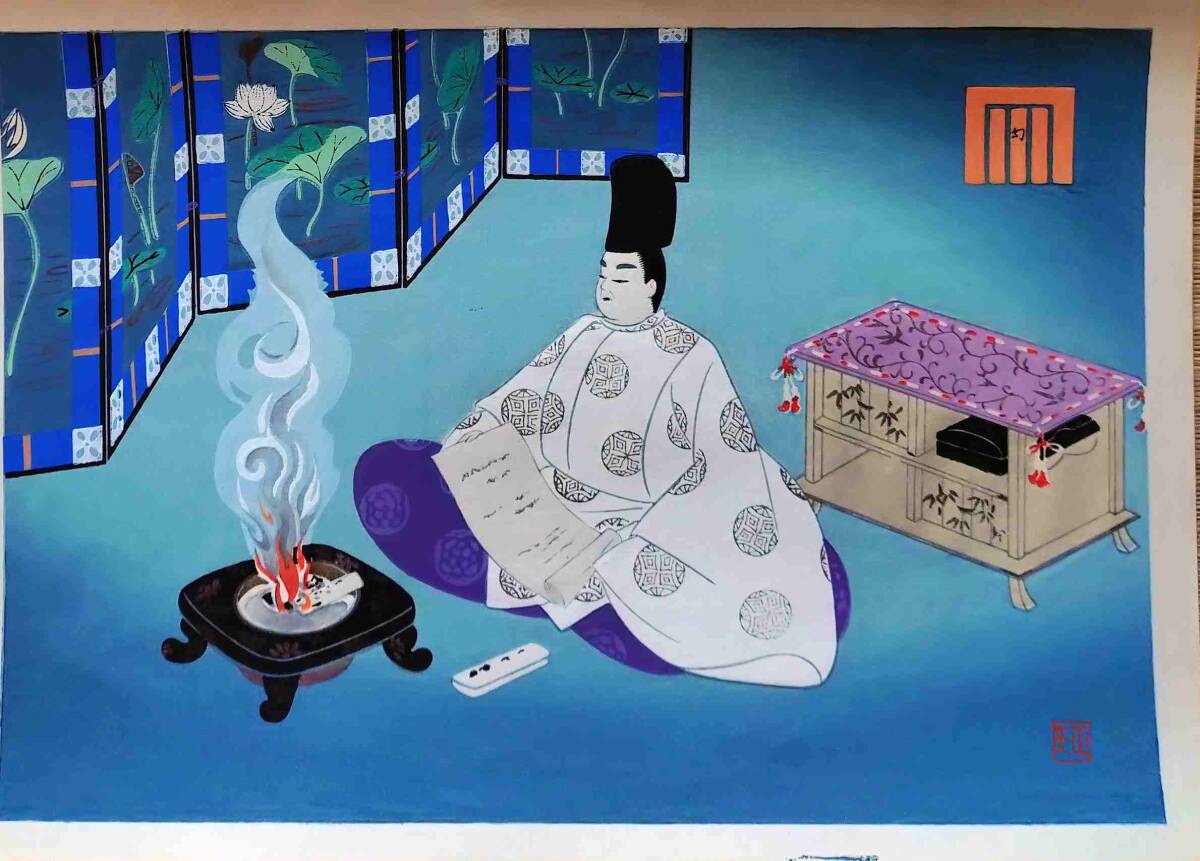 - f24121441〇彩色木版画1枚 源氏物語五十四帖 幻 解説書付 海老名正夫原画 山田書院 昭和時代〇和本古書古文書