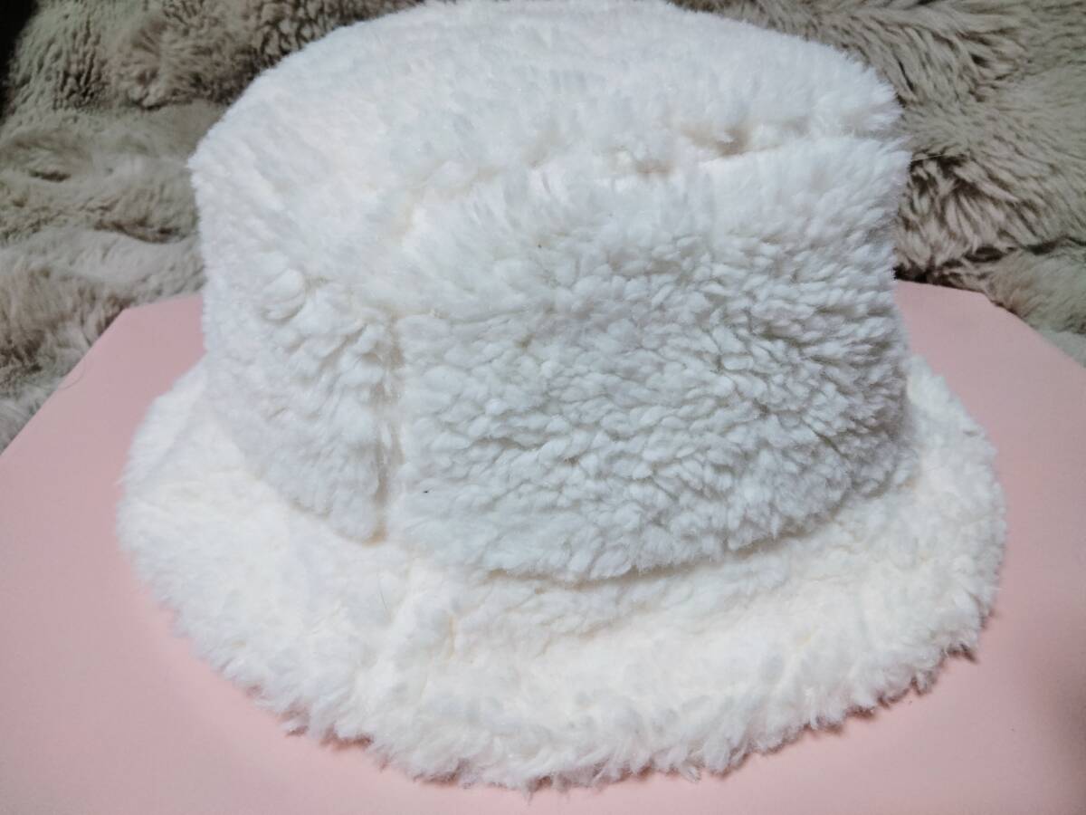 - バケットハット【APPiA】50㎝ 帽子 ボア ホワイト 白 ハット もこもこ ふわふわ オフホワイト
