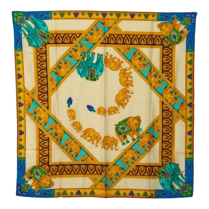 - 中古 美品 カルティエ スカーフ マハラジャ 象 宝石 シルク Aランク ベージュ マルチカラー レディース CARTIER あ【送料無料】【西神店】