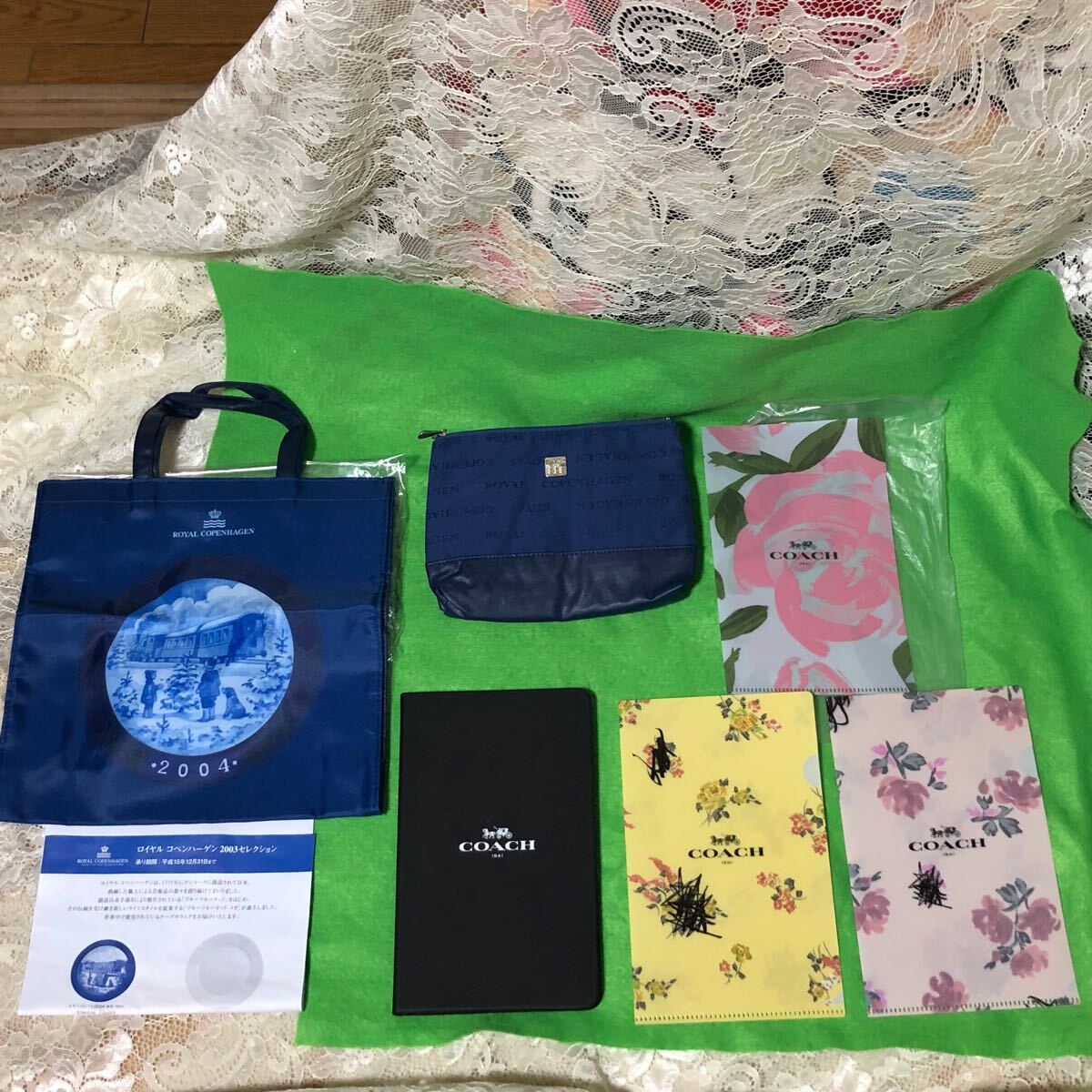 - 未使用保管品 まとめて6点 ロイヤルコペンハーゲン ポーチ/トートバッグ(三越) コーチ手帳/ファイル3点(付録)
