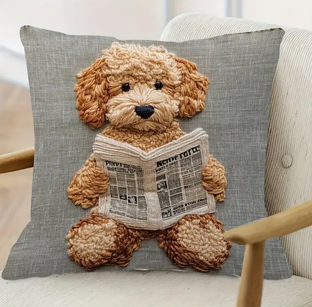 - クッションカバー マルプーB 刺繍風 45cm 犬の雑貨 HANAKO