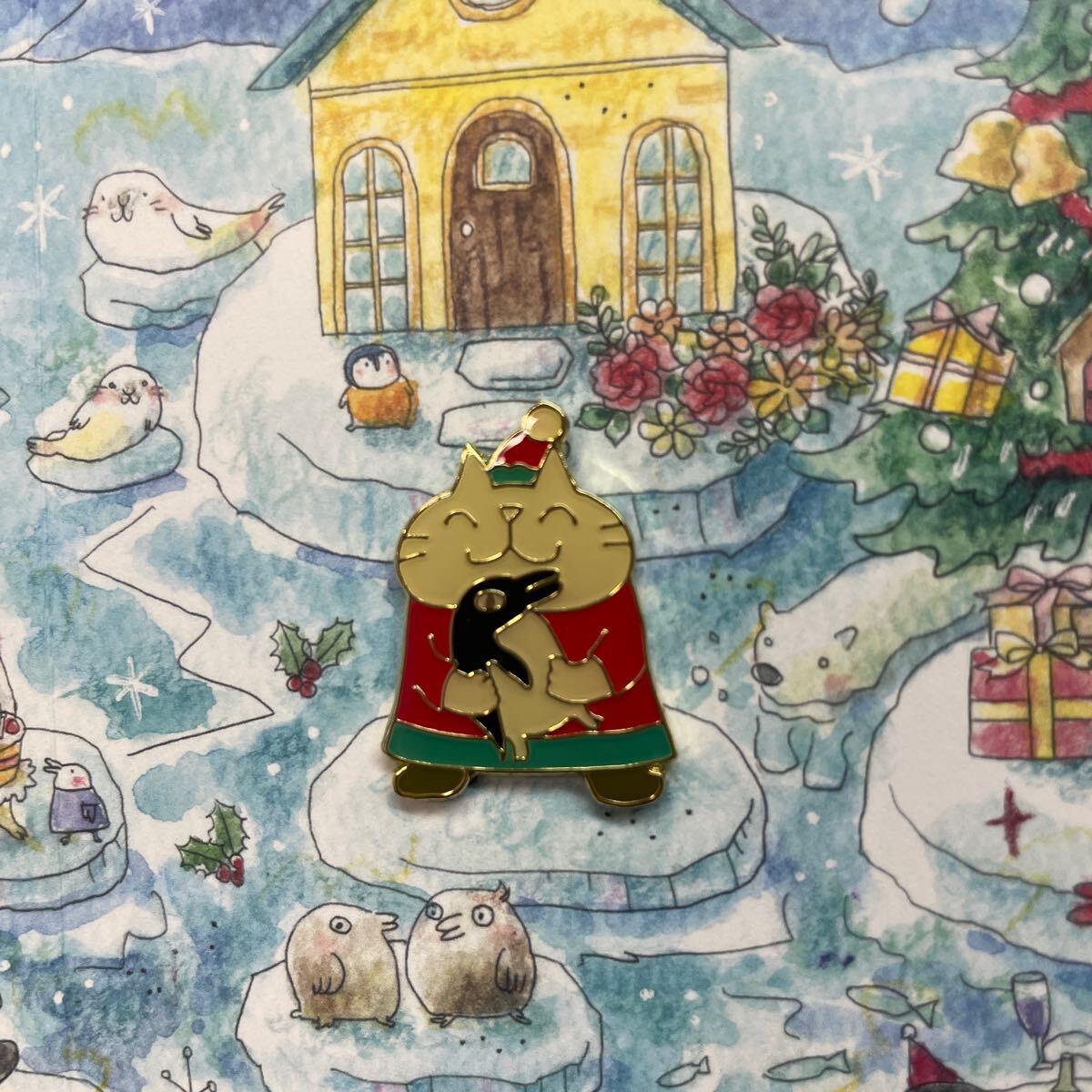 - ピンバッヂ PINS 南極のクリスマス カワイイ 猫 キュート 可愛い 吉沢深雪 2024年冬 バッジ ウインター
