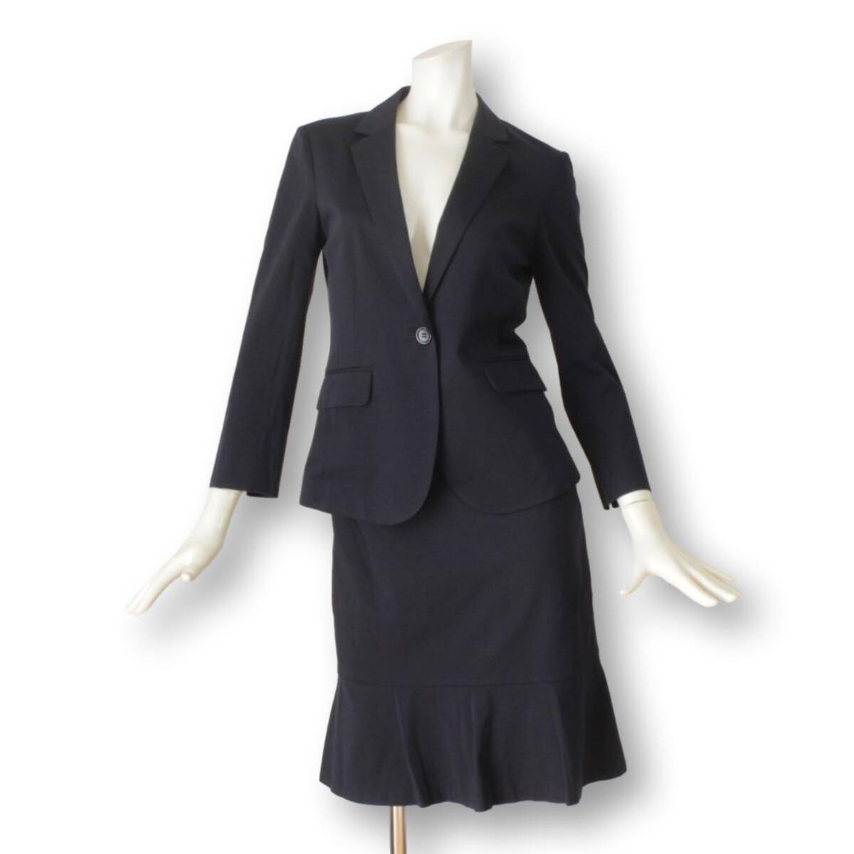 > 20【美品】アンタイトル スカートスーツ 2 濃紺 ダークネイビー M ストレッチ コットン 面接 ビジネス tqe UNTITLED 春夏秋 ★美品★