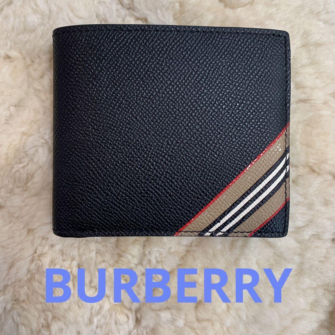 - ★美品★BURBERRY バーバリー 二つ折り財布 ストライプ レザー 黒
