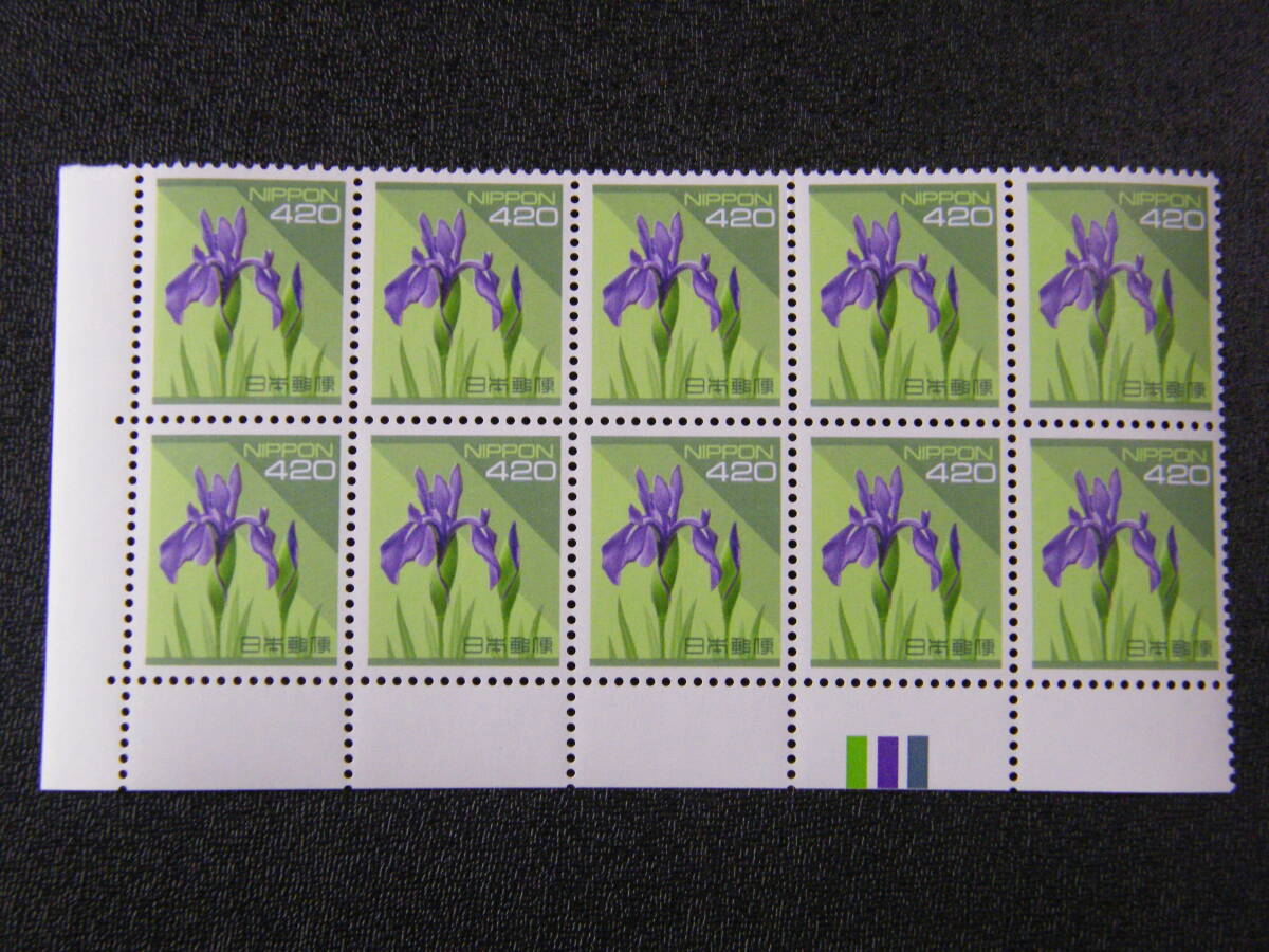 - ハナショウブ 420円 カラーマーク下 10枚ブロック 未使用 1994年シリーズ(CM付)