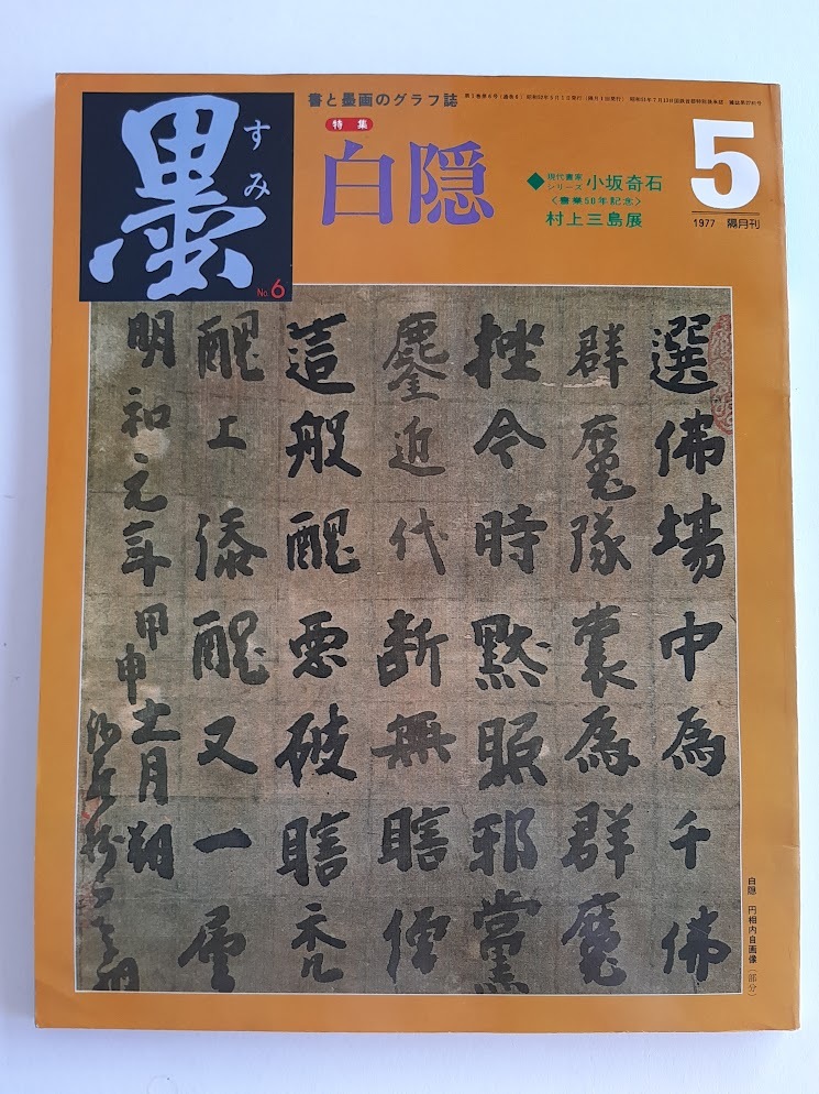 - ★送料込【墨 第6号1977年5月号】特集:白隠★現代書家シリーズ・小坂奇石/書業50年記念・村上三島展【芸術新聞社】