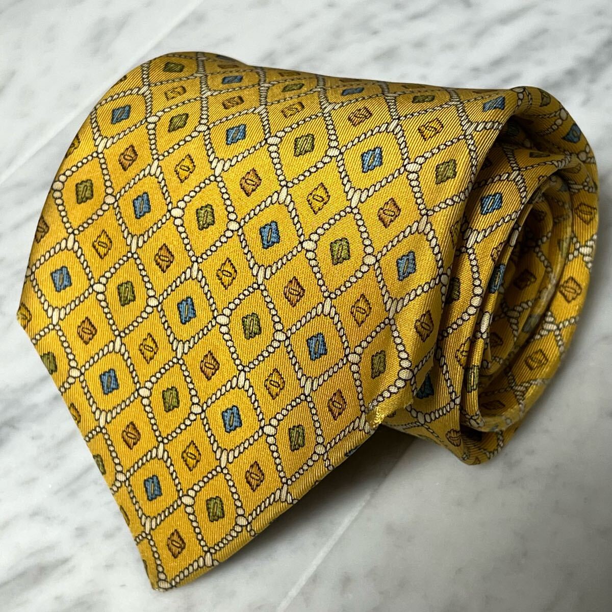 - 999円~ Ferragamo ネクタイ イエロー系 マルチカラー ブロックチェック柄 (YW4)