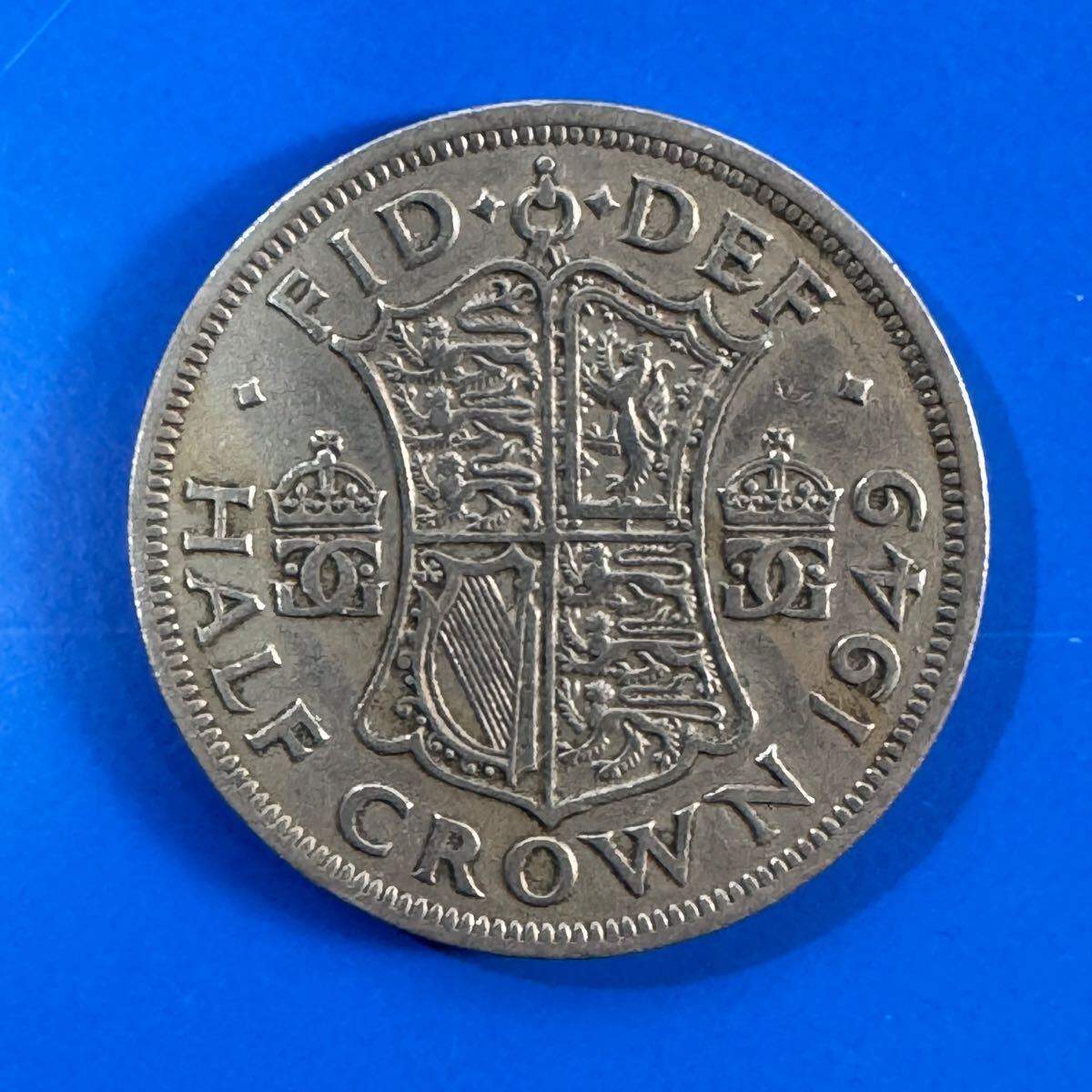 - イギリス 1949年1/2クラウン 銅貨ジョージ6世・アンティークコイン y1C7
