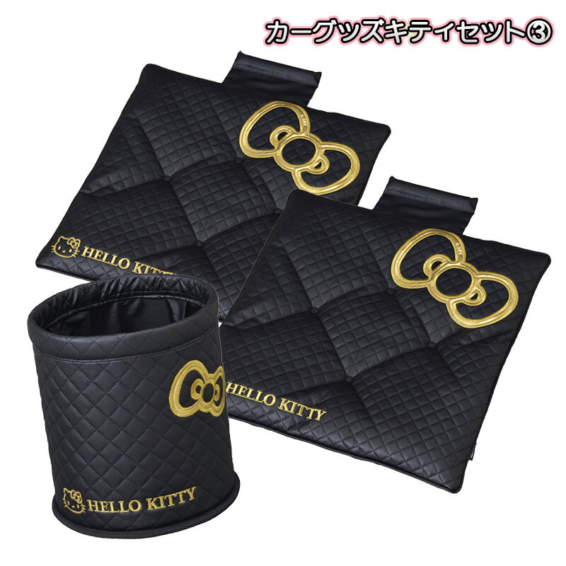 - ハローキティセット3 シンプル シートクッション・ゴミ箱 運転席・助手席 キティちゃん HelloKitty セイワ KT492