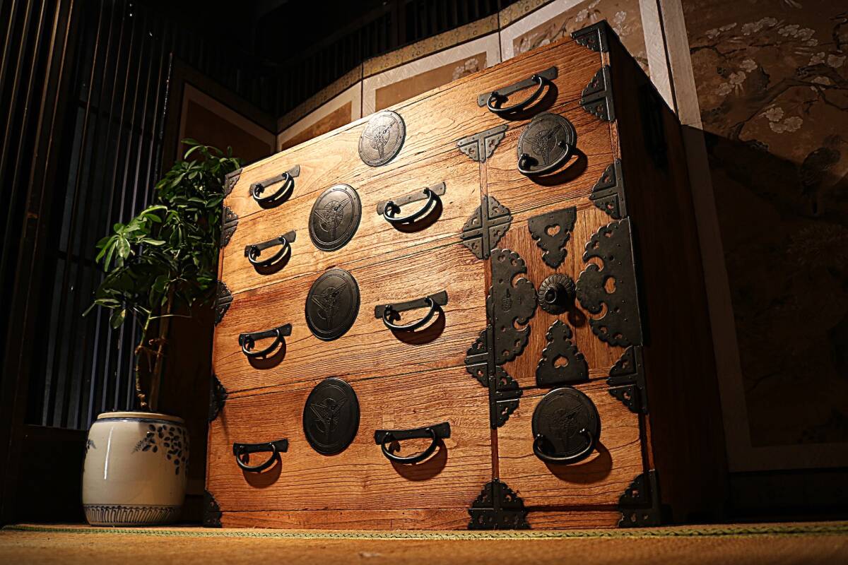 - 【伊董】C12.希少!総桐!木地浮造り仕上げ!古い時代箪笥宮城県仙台地方丸に三ッ檜扇紋衣装箪笥桐明治 #和家具 #刀箪笥 #骨董品 #古民藝