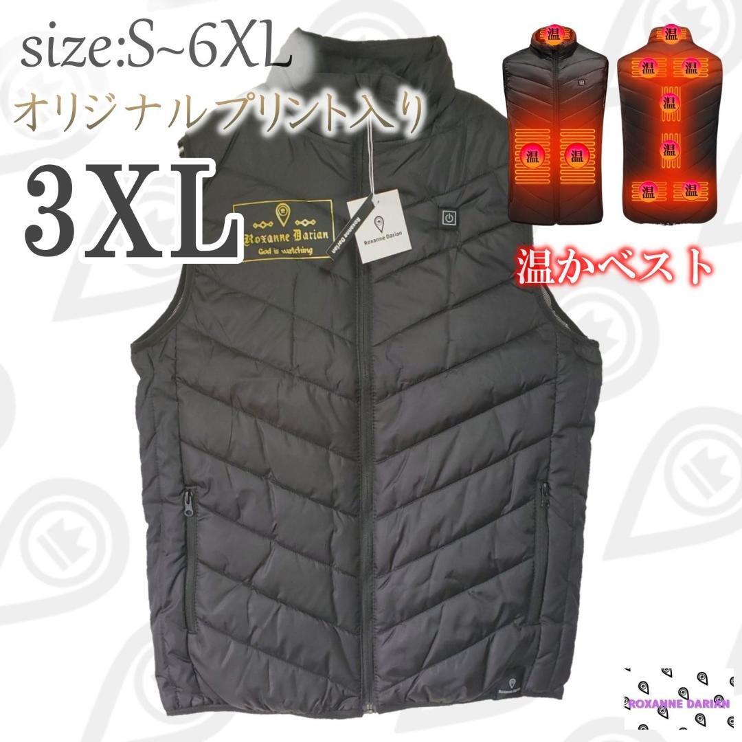 - 電熱ベスト ヒーターベスト 前後独立温度設定 9箇所発熱 3XL ブラック