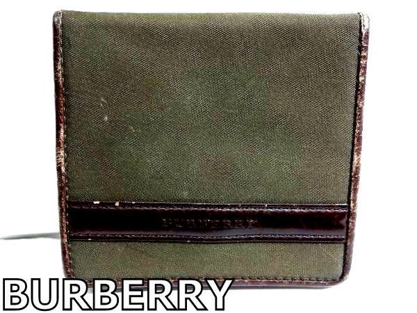 - X5A094◆本物◆ バーバリー BURBERRY モスグリーン&本革レザー ブラウン 小銭入れ コインケース 財布