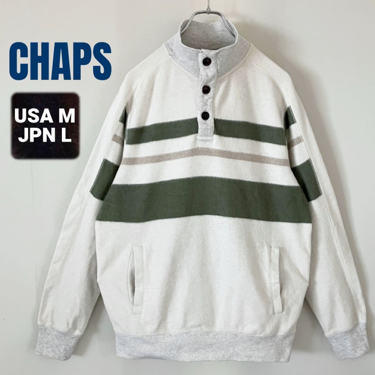 - CHAPS/チャップス ★リバース起毛スウェット/ボーダー柄★モック&ヘンリーネック★USAメンズM(JPNメンズL-XL相当)