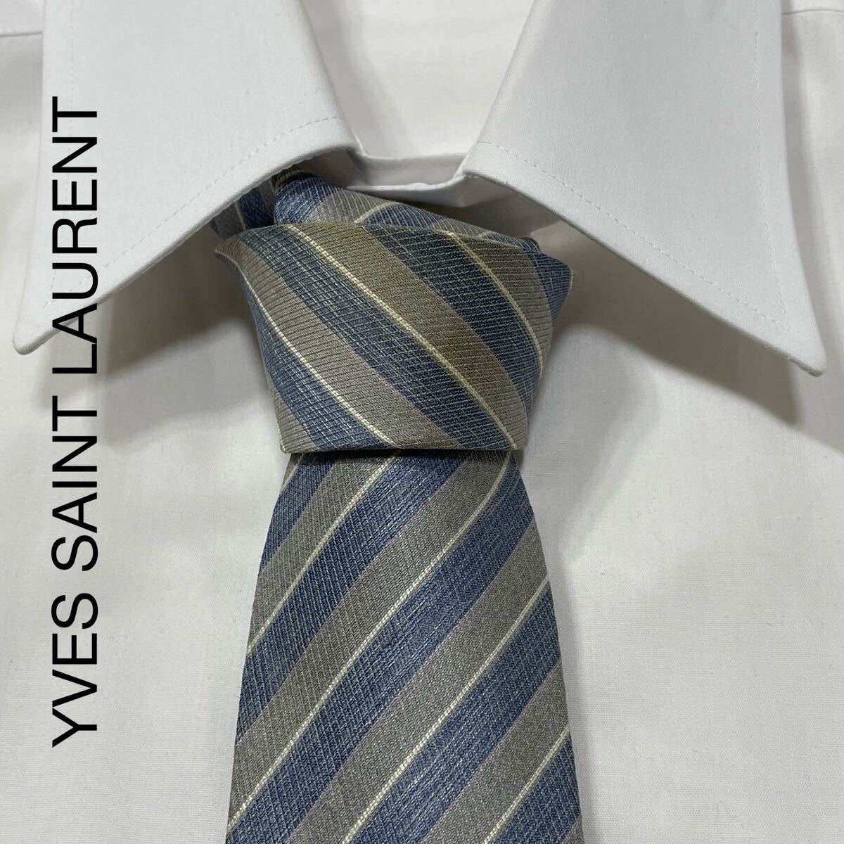 - YVES SAINT LAURENT イヴサンローラン ストライプ シルク リネン ネクタイ ライトブルー グレー TG1018