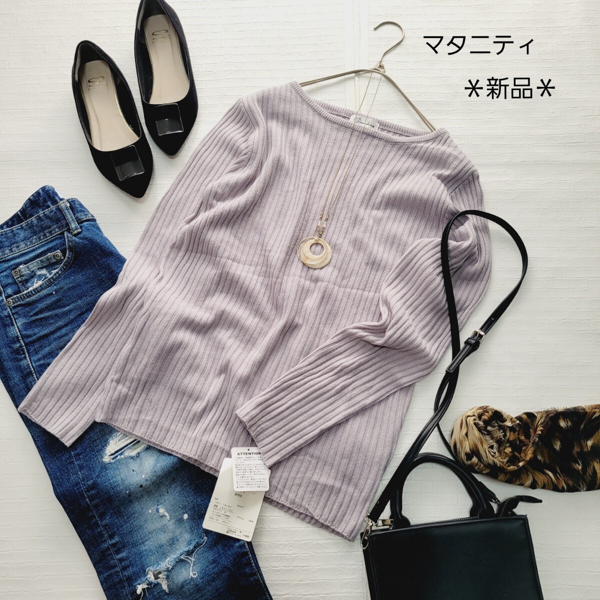> 新品 クロスプラス パープル/グレー 両サイド脇授乳 パープルニットプルオーバー♪Mサイズ 長袖ニット 春服♪マタニティ