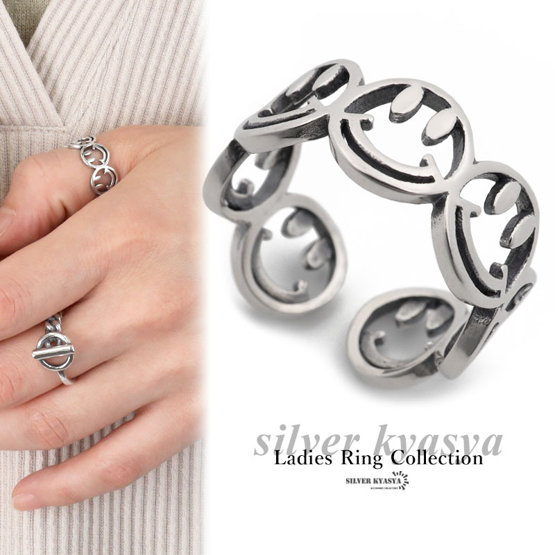 - シルバー925 リング ニコちゃん スマイル レディース 指輪 フリーサイズ 人気 太め シルバー 金属アレルギー
