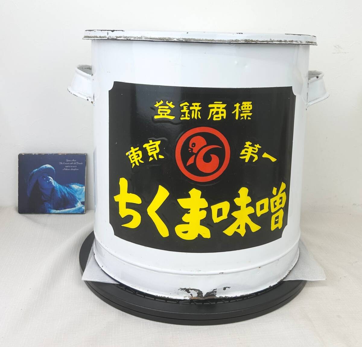 - ☆★☆ 東京第一 ちくま味噌 ホーロー製 蓋付き 容器 昭和レトロ 琺瑯 広告 収納 古道具 ☆★☆