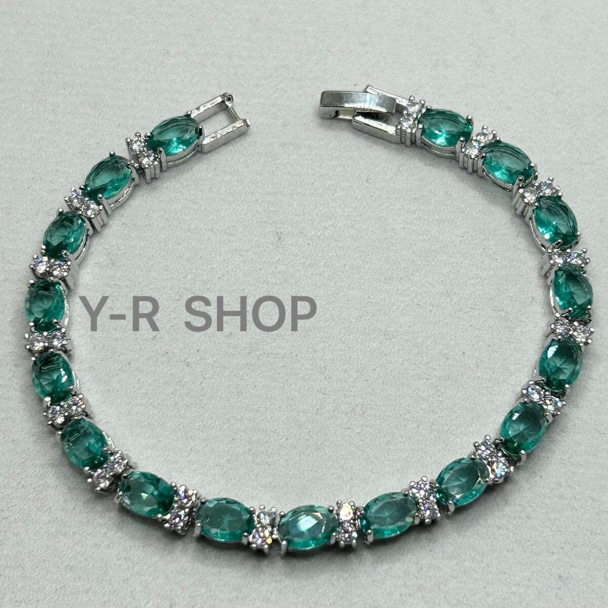 > パライバトルマリン風カラーストーンとキュービックジルコニア のエレガントブレスレット★レディース腕輪シルバーアクセサリー新品宝石Y-R