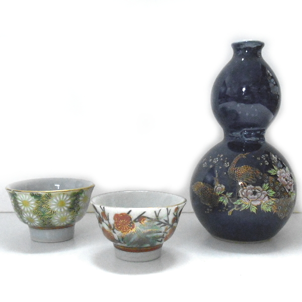 - 九谷焼★昇竜 瓢型徳利 花・孔雀文様 仙守等 盃 松梅文様 花詰文様 2種