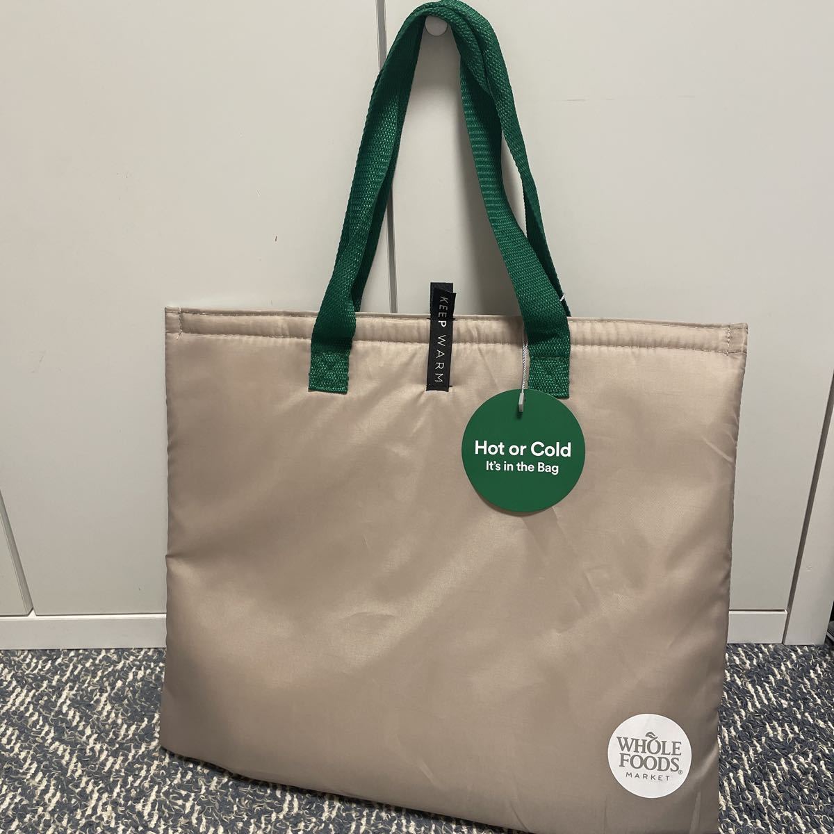 > ★ ホールフーズマーケット 保冷バッグ ベージュ グリーン エコバッグ WHOLE FOODS MARKET アウトドア キャンプ 中サイズ 未使用