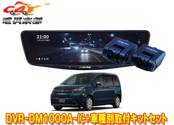 - 【取寄商品】アルパインDVR-DM1000A-IC+KTX-M01-FR-GTドライブレコーダー搭載10型デジタルミラー+フリード(GT系)用取付キットセット