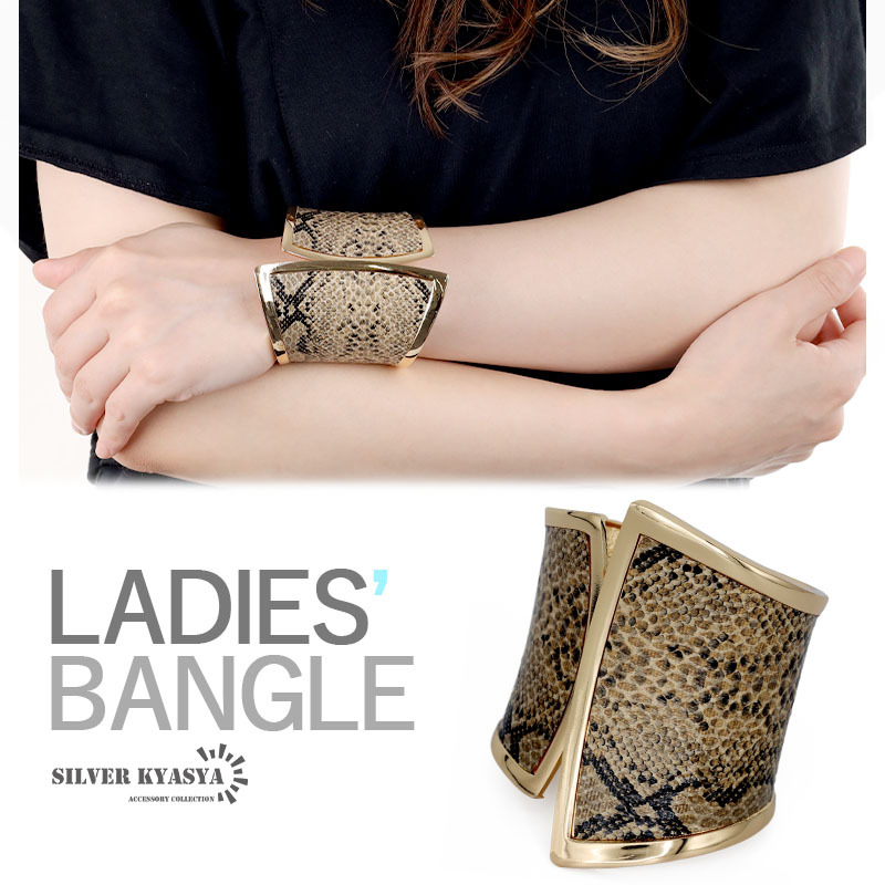 > パイソン柄 ワイドバングル ヘビ柄 スネークバングル 太め 幅広 太めバングル 大ぶり ゴールド 開閉式 カジュアルバングル 腕輪 レディース
