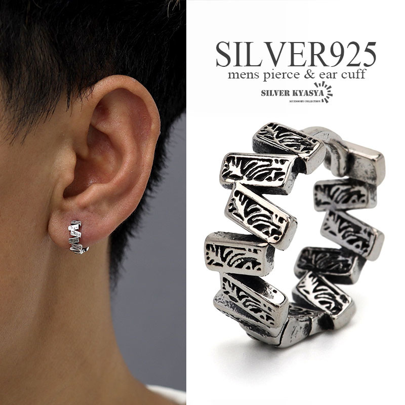 - シルバー925 フープピアス 唐草 アラベスク ジグザグ silver シルバーピアス 個性的 金属アレルギー 対応 片耳用