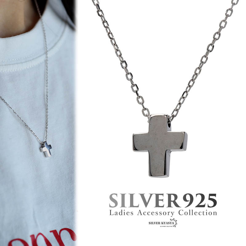- ミニクロスネックレス 小さめ ペンダント シルバークロスネックレス 華奢 シルバー925