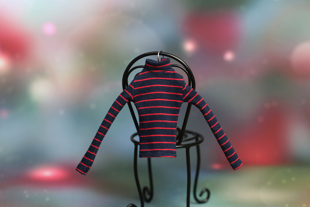 - 人形服a52-06(紺×赤ボーダー)ハイネック長袖Tシャツ細身momokoジェニー用
